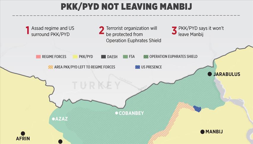 Local sources in Manbij told Anadolu Agency that the PYD/PKK had recently handed over three villages in the area but that regime forces had not entirely filled the vacuum.