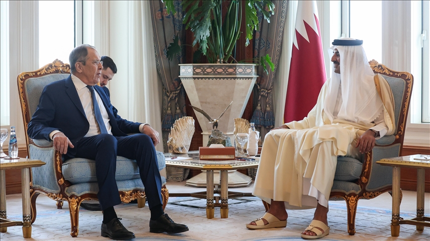 Qatar's Emir Sheikh Tamim bin Hamad Al Thani met in Doha on Wednesday with Russian Foreign Minister Sergey Lavrov to discuss regional developments and cooperation in the energy field.