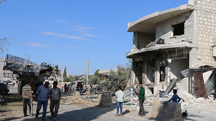 The Russian strike targeted a drug warehouse and a civil defense center in Turmanin neighborhood, Vasik Harak told Anadolu Agency.