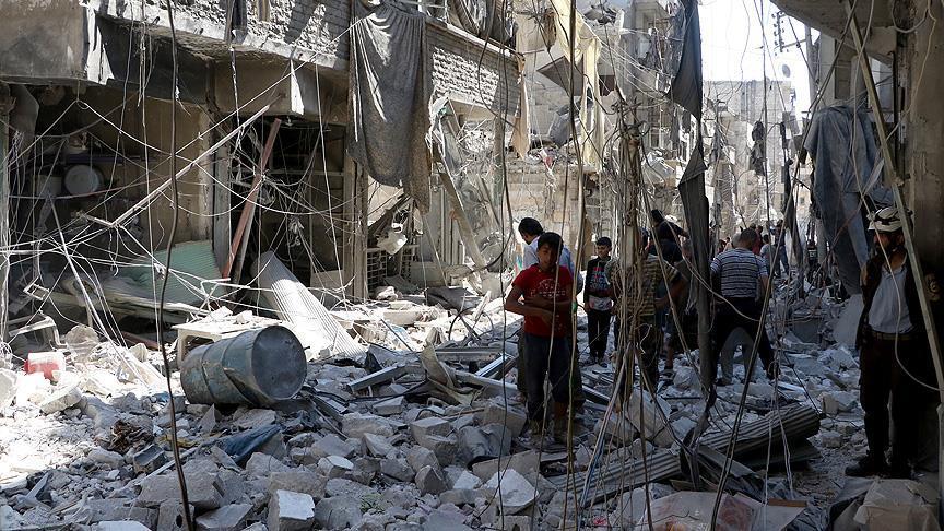 Russian fighter jets on Sunday bombed Syrian opposition-held residential area in Aleppo with cluster bombs, killing at least 10 civilians, local defense sources told Anadolu Agency.