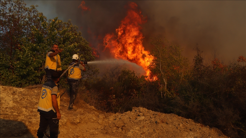 Syria Civil Defense said Monday that firefighting crews were still working to contain large wildfires that broke out in the Latakia countryside in the country’s west.