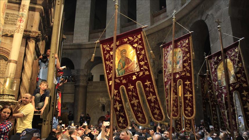 Thousands of Orthodox Christians gathered in the Church of Holy Sepulchre in Jerusalem to hold their "Holy Fire" ceremony on the eve of their Easter celebrations.