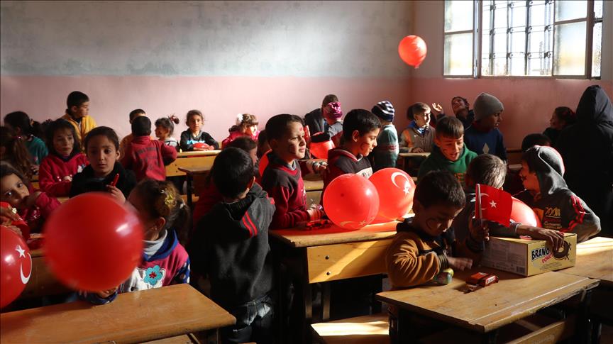 Turkish officials delivered sports equipment on Thursday to several schools in Syria's northern town of Afrin.
