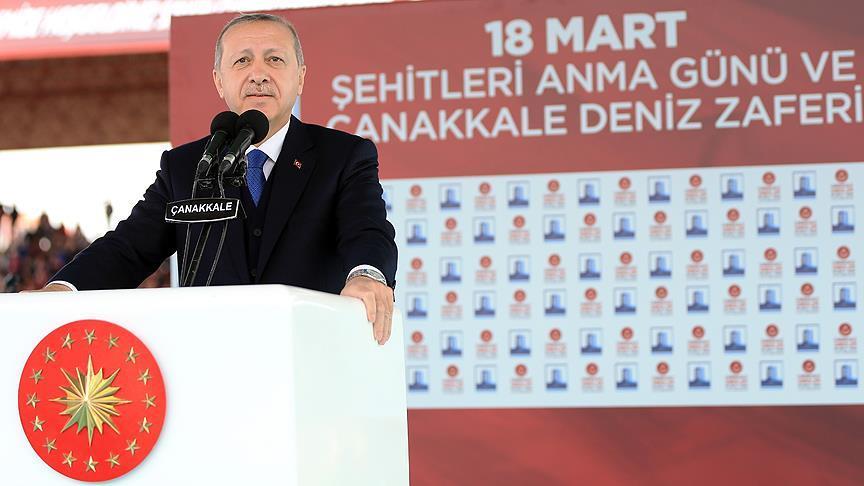 "Afrin town center was completely taken control of at 8.30 a.m.," Erdogan said during his address at the ceremony of 103rd anniversary of Gallipoli Campaign.