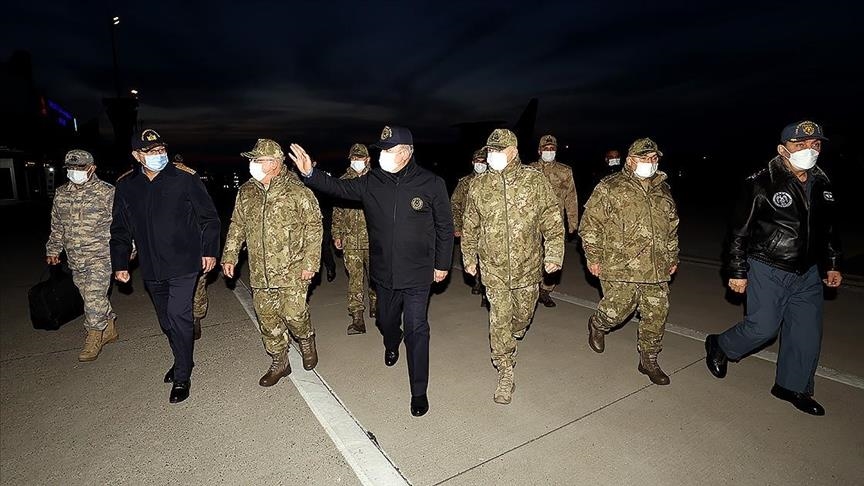 The Turkish defense chief also held a video conference with the commanders of the borderline and cross-border units to be briefed about the latest developments on the field and to deliver instructions.
