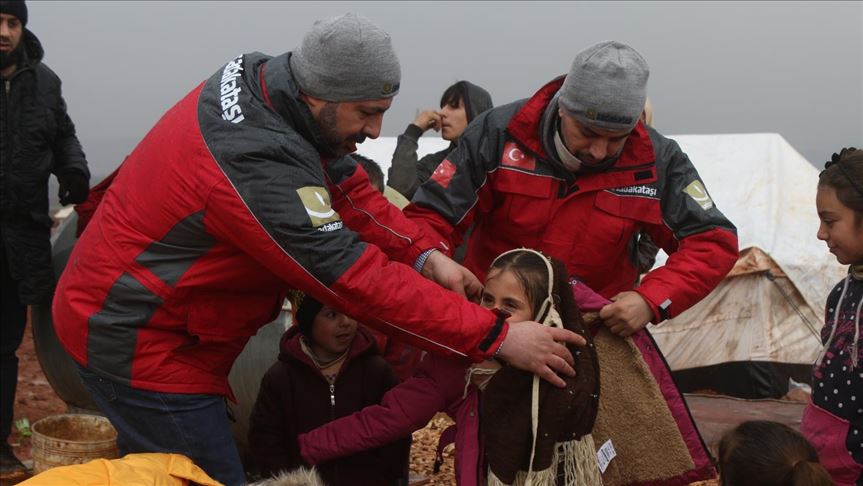 A Turkish aid agency provided humanitarian aid to people of Syria’s Idlib who escaped bombardments of regime and its supporters, and took shelter near the Turkish border.
