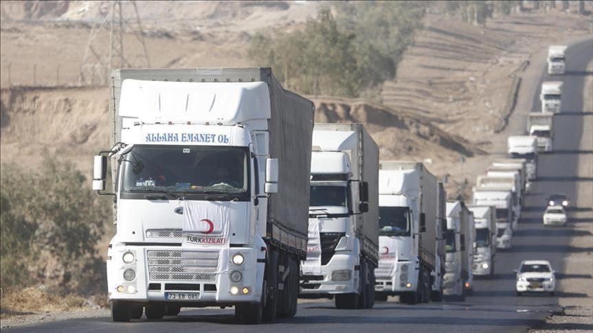 The 108-truck convoy is carrying some $6 million worth of humanitarian aid, Safak Lostar, the Turkish Red Crescent’s coordinator in Iraq, told Anadolu Agency.