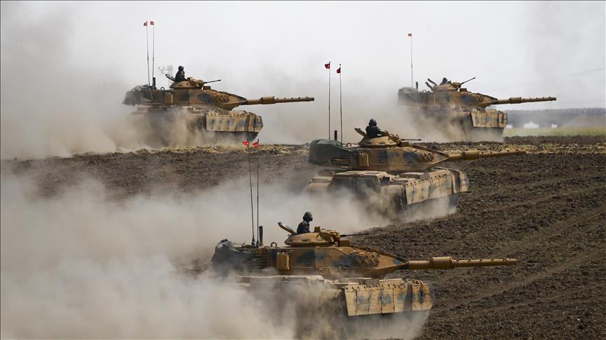 Turkish soldiers and tanks take part in the Turkish Armed Forces' military drill that began in the Silopi district near the Habur border gate on September 18, in Sirnak, Turkey on September 24, 2017, on the seventh day of the ongoing drill.