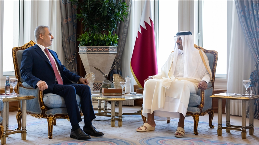Türkiye's Foreign Minister Hakan Fidan met on Thursday Qatari Emir Sheikh Tamim bin Hamad Al Thani in Doha, the Turkish Foreign Ministry said.