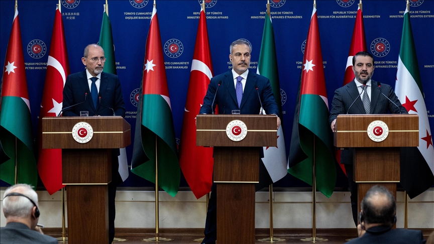 Türkiye’s Foreign Minister Hakan Fidan, his Syrian counterpart Asaad al-Shaibani and Jordanian counterpart Ayman Safadi on Monday reiterated their commitment to supporting Syria’s security, stability and sovereignty in a joint news conference in the Turkish capital Ankara.