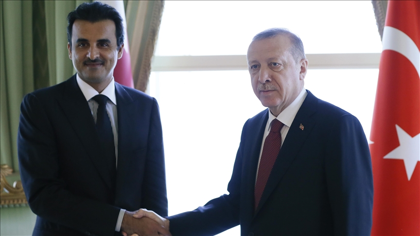 Turkish President Recep Tayyip Erdogan and Qatari Emir Sheikh Tamim bin Hamad Al Thani on Monday discussed bilateral relations and the humanitarian situation in Gaza.