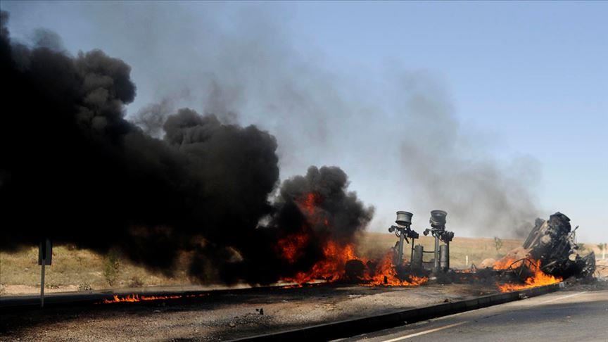 The U.S.-led coalition airstrikes Friday hit tankers carrying oil from an eastern Syrian city besieged by terrorist YPG/PKK to an area under control of the Bashar Assad regime, according to local sources.