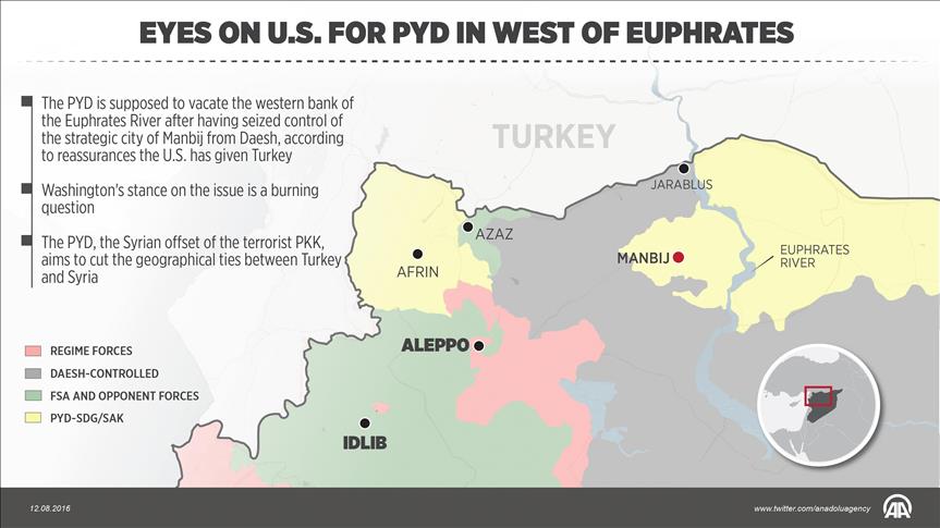 The PYD, the Syrian arm of the PKK terrorist group, is supposed to vacate the west bank of the Euphrates River after having seized control of a strategic city there from Daesh Friday.
