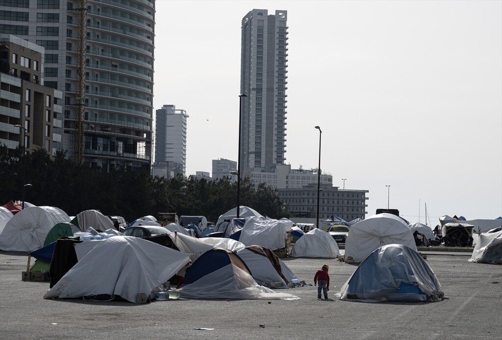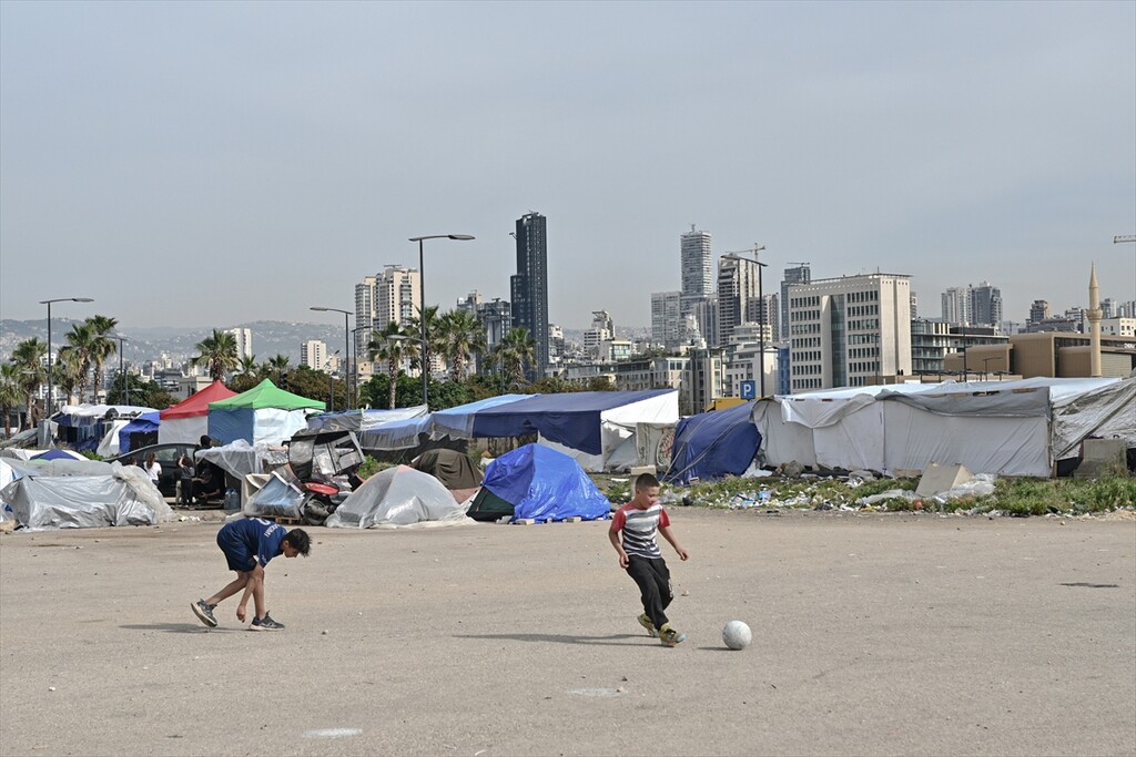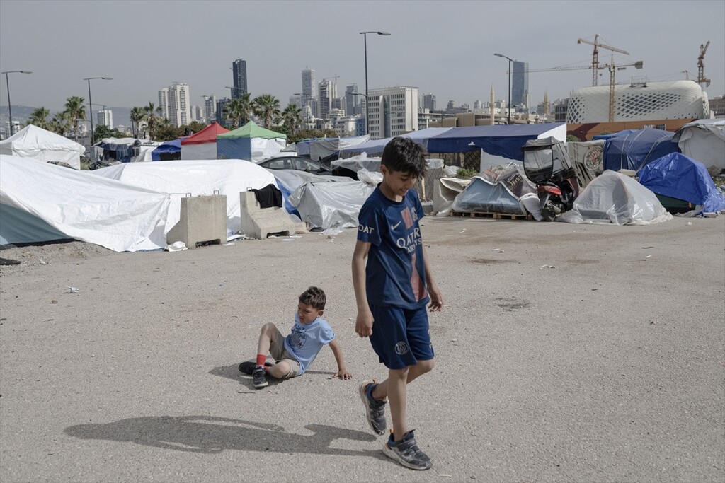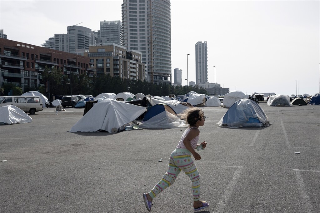 Displaced civilians struggle to survive in Beirut, capital of Lebanon, living in makeshift tents set up in streets, parks, schools, and stadiums after being forced to flee their homes due to ongoing attacks in the southern parts of the city.