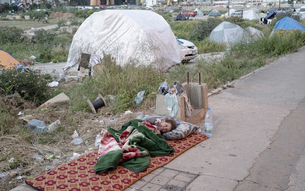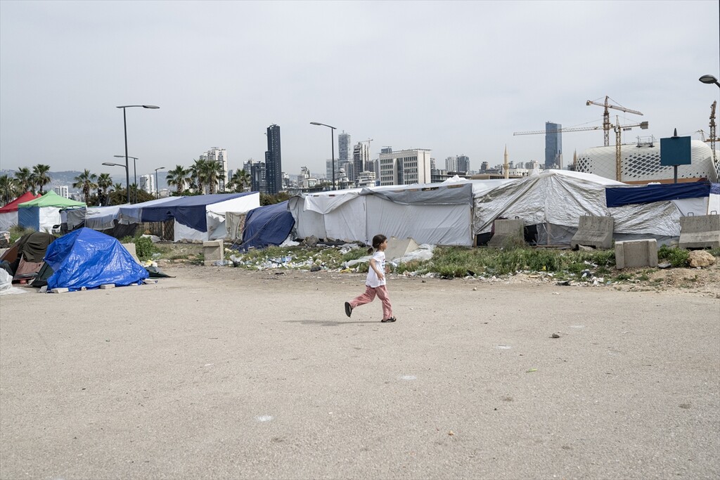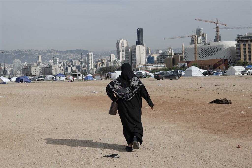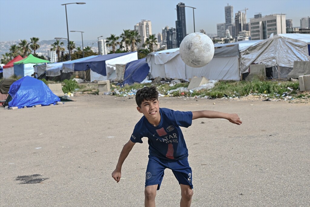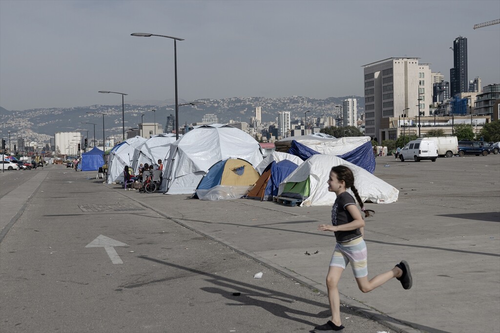 Displaced civilians struggle to survive in Beirut, capital of Lebanon, living in makeshift tents set up in streets, parks, schools, and stadiums after being forced to flee their homes due to ongoing attacks in the southern parts of the city.