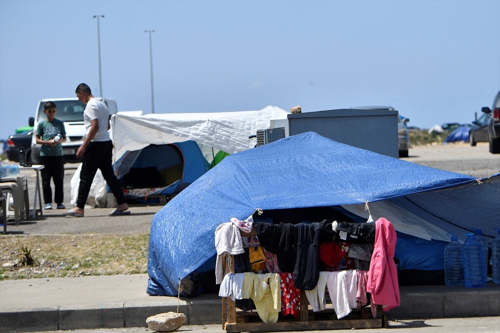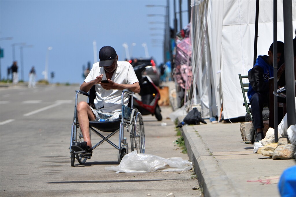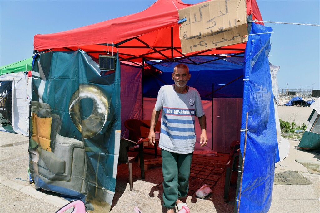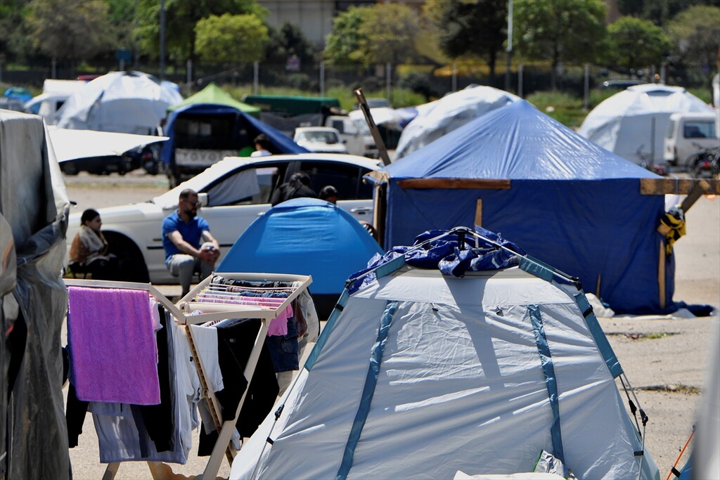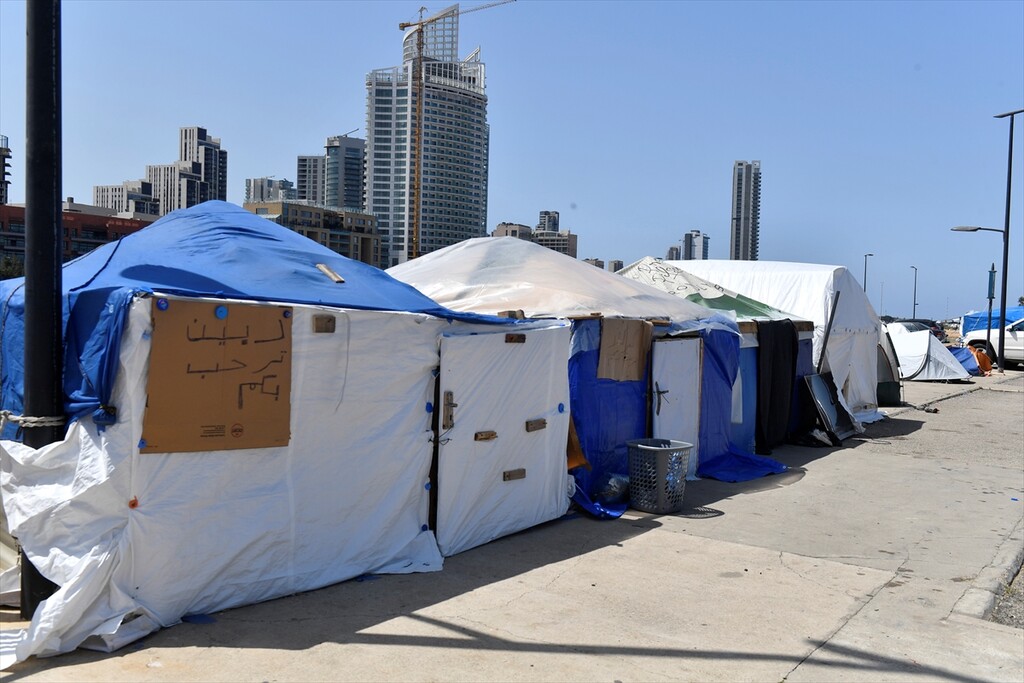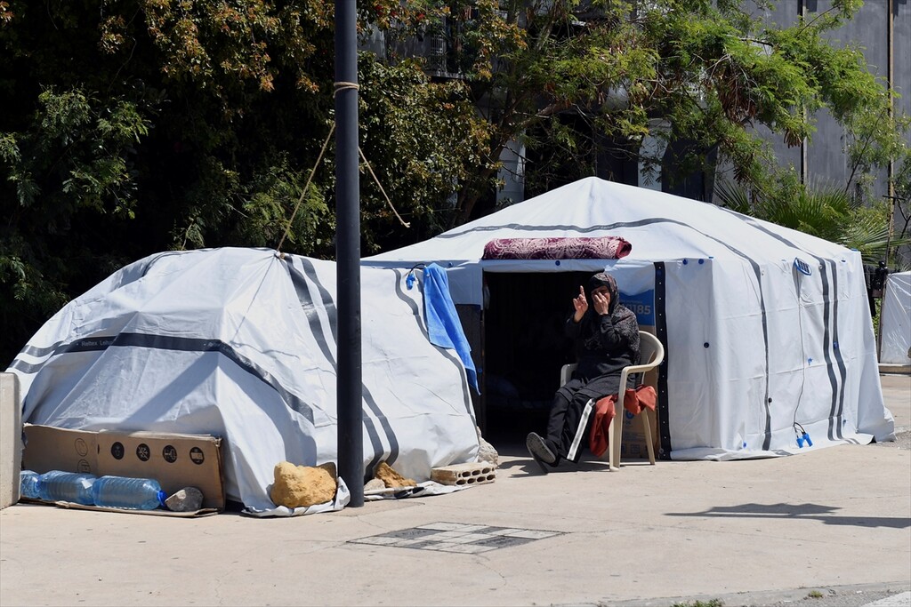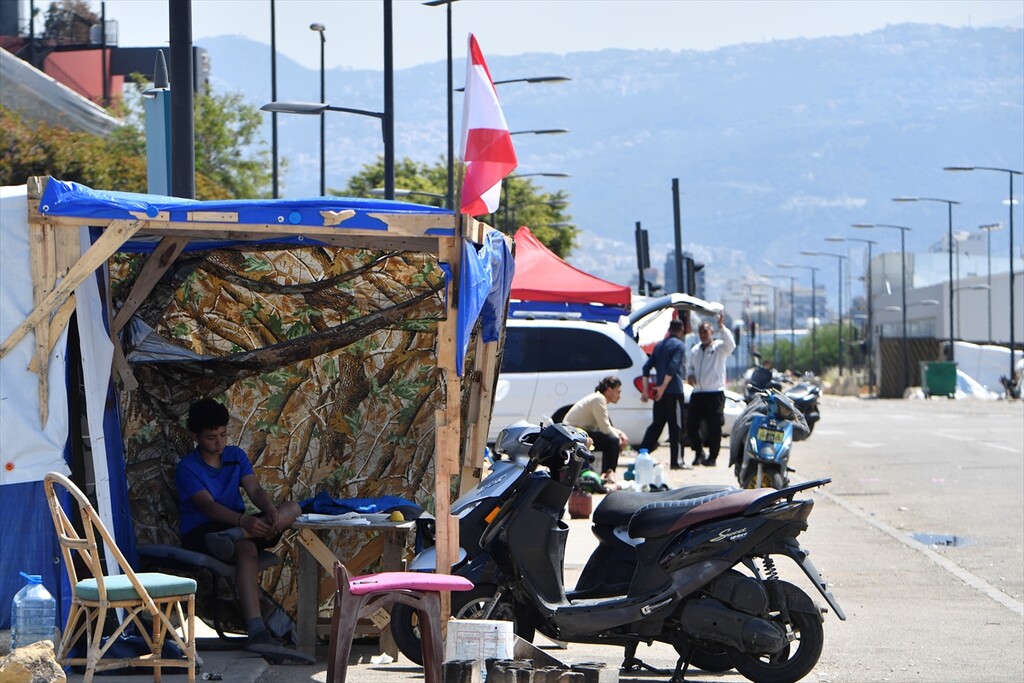 Displaced Lebanese staying in tents are seen in the Raouche area in Beirut, Lebanon on April 13, 2026.