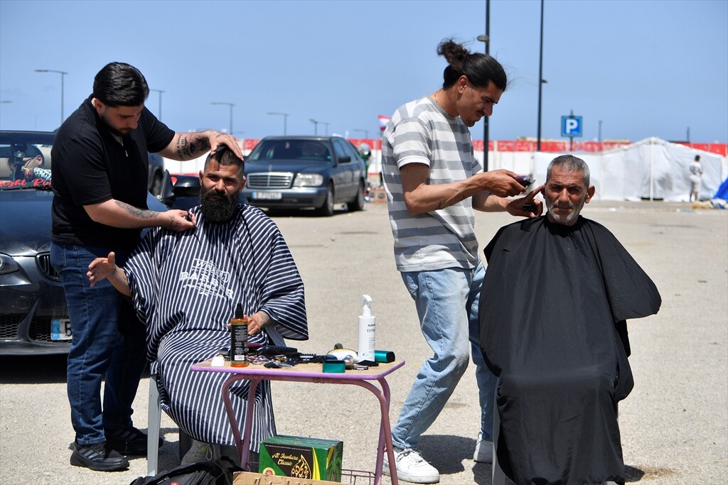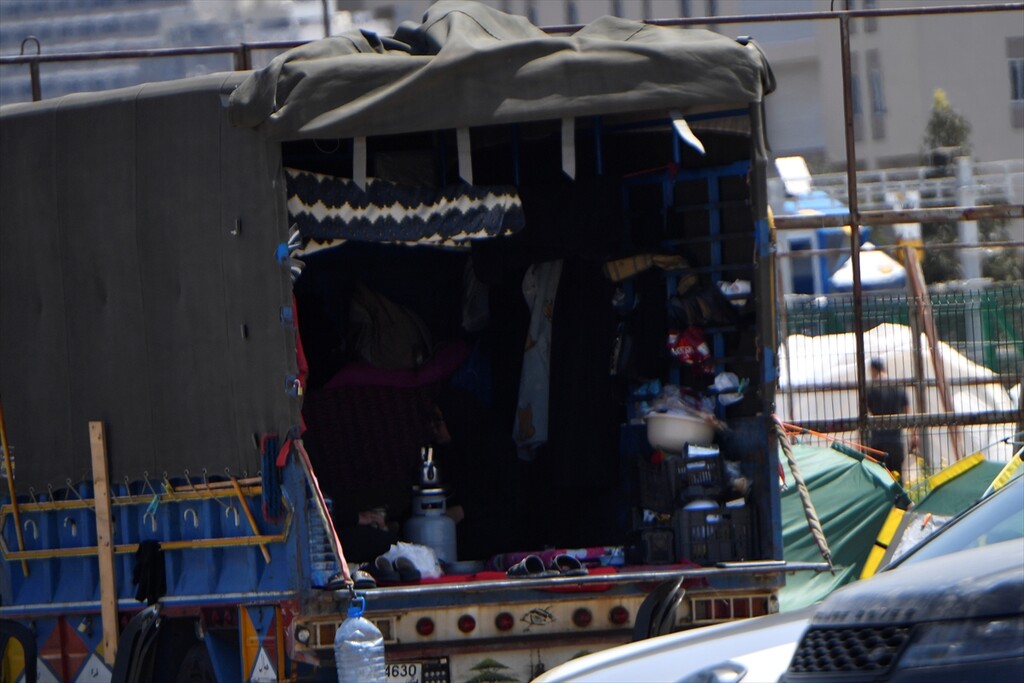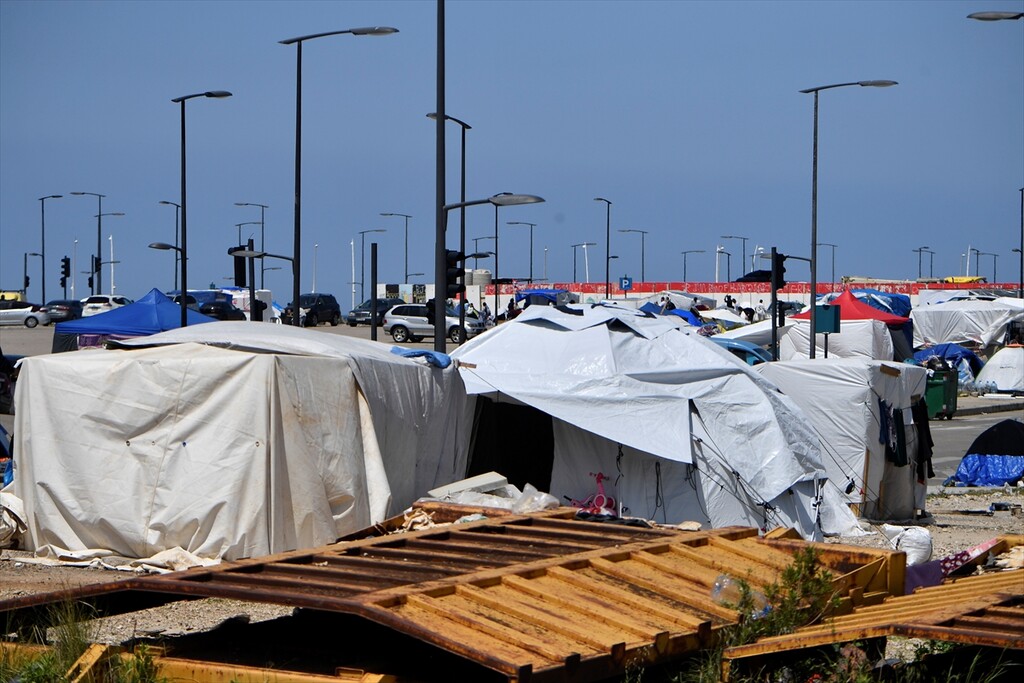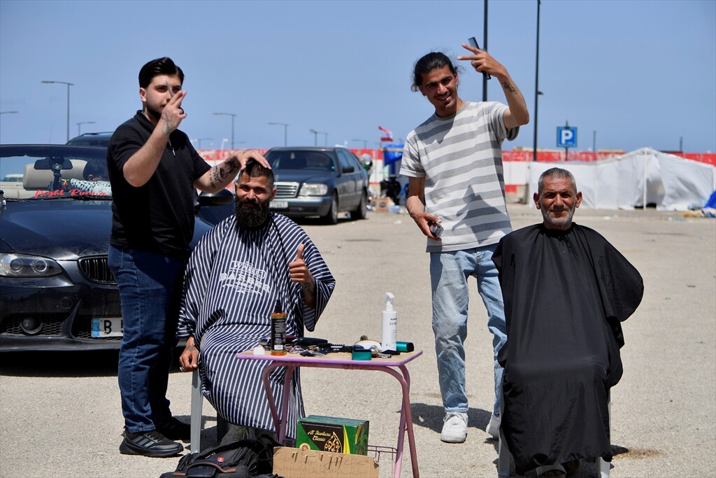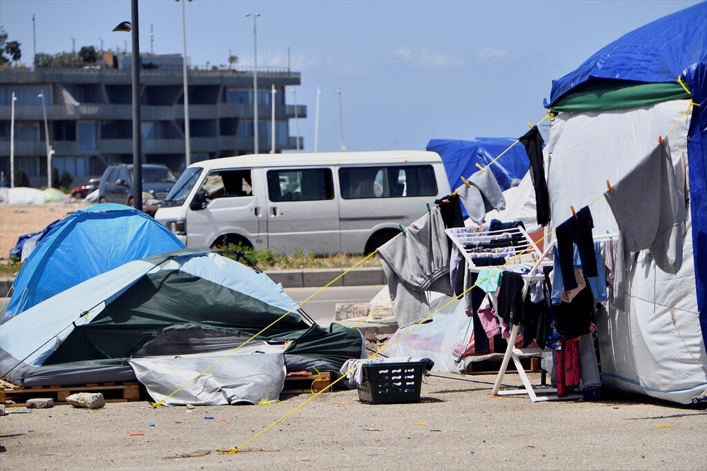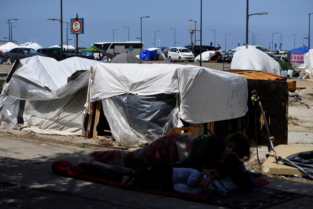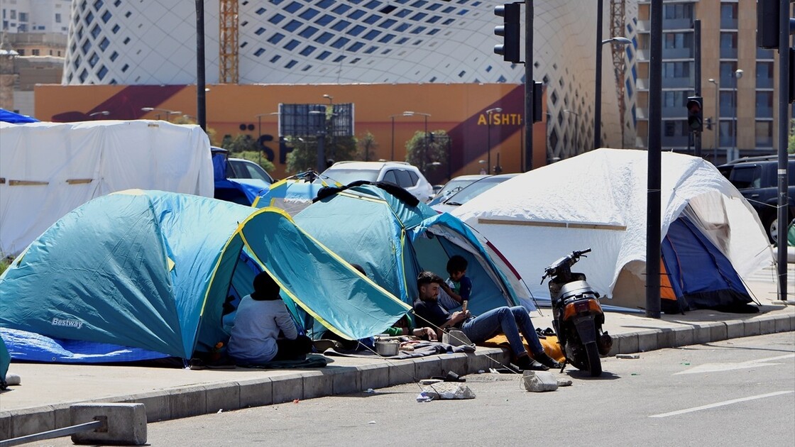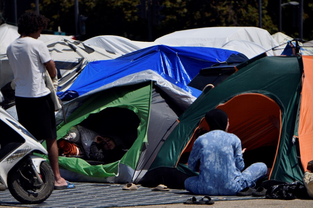 Displaced Lebanese staying in tents are seen in the Raouche area in Beirut, Lebanon on April 13, 2026.