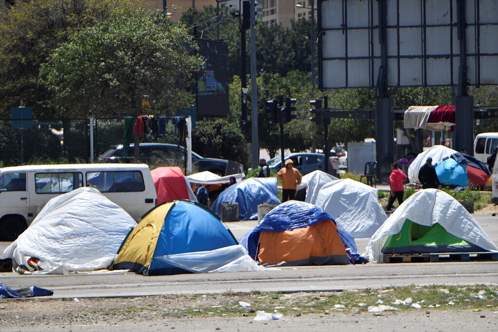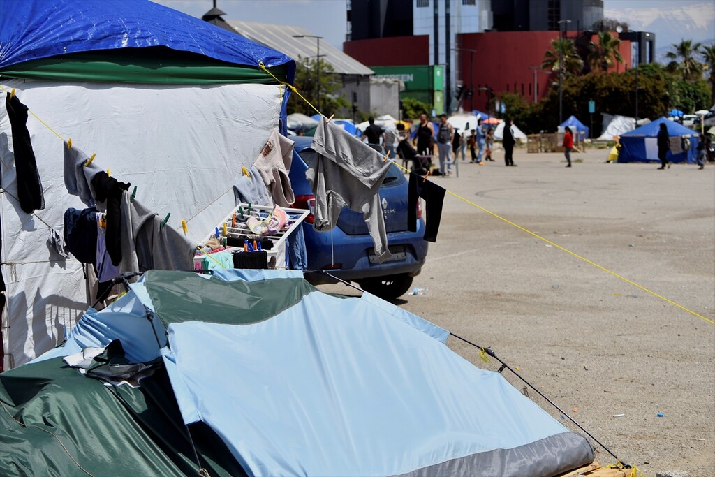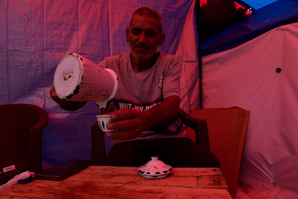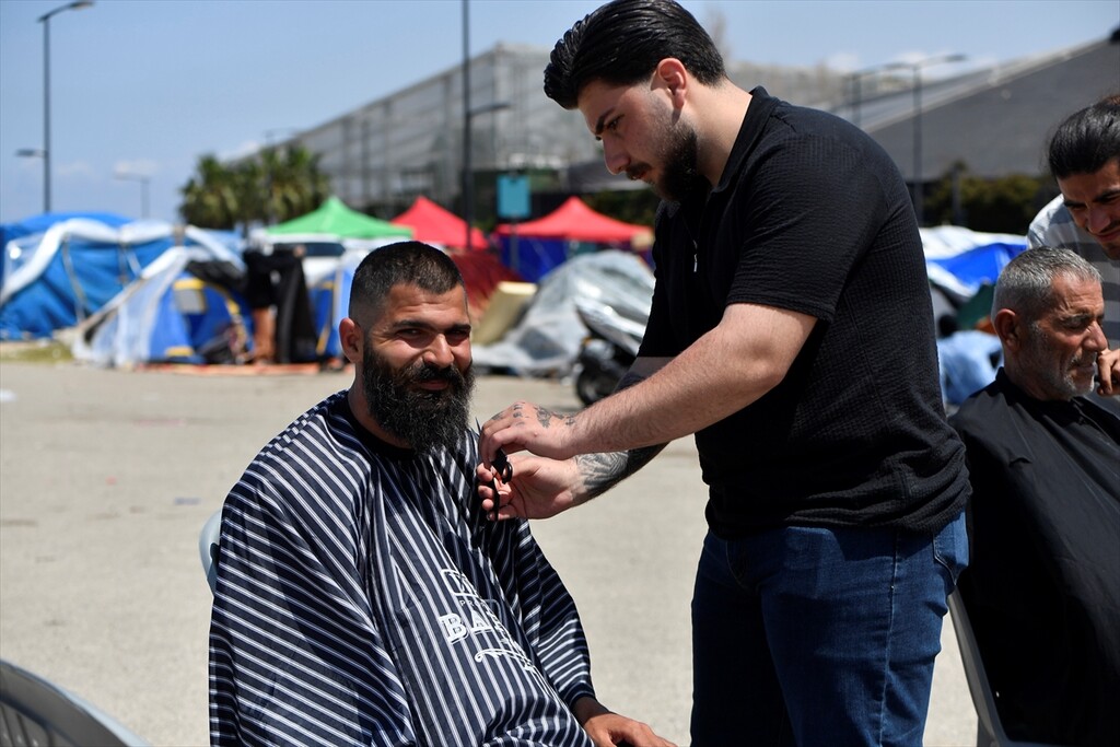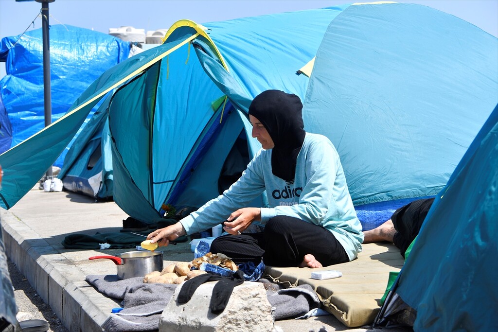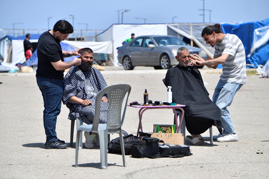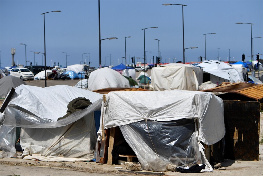 Displaced Lebanese staying in tents are seen in the Raouche area in Beirut, Lebanon on April 13, 2026.