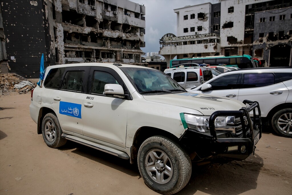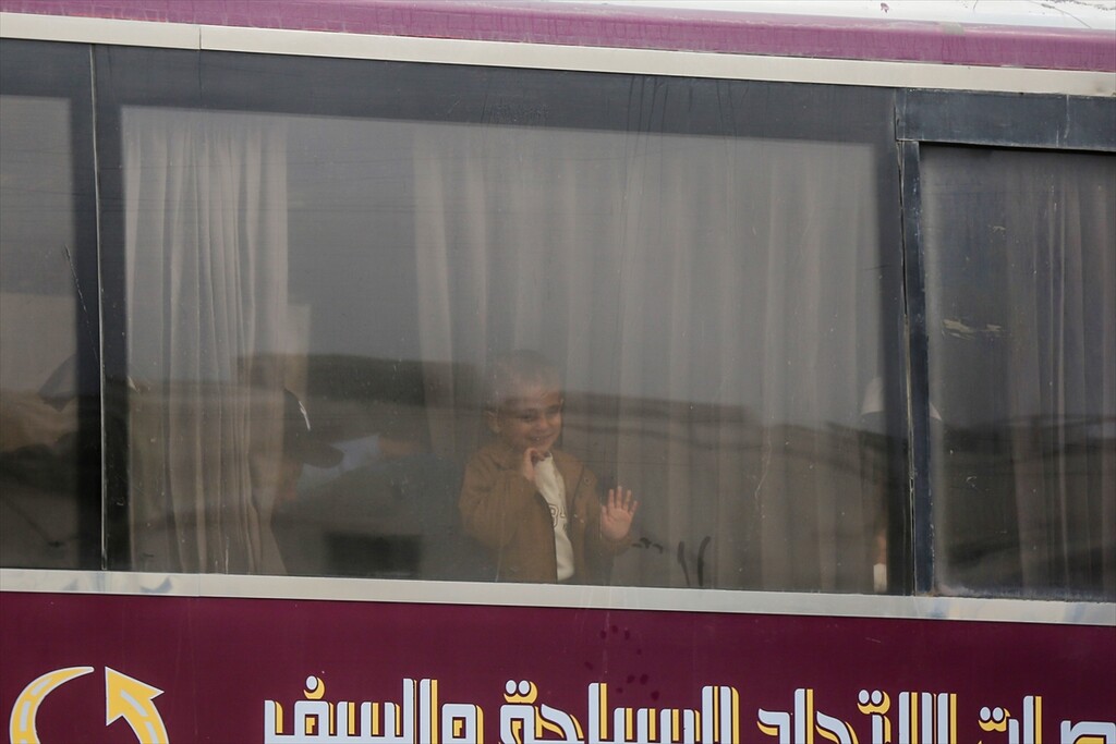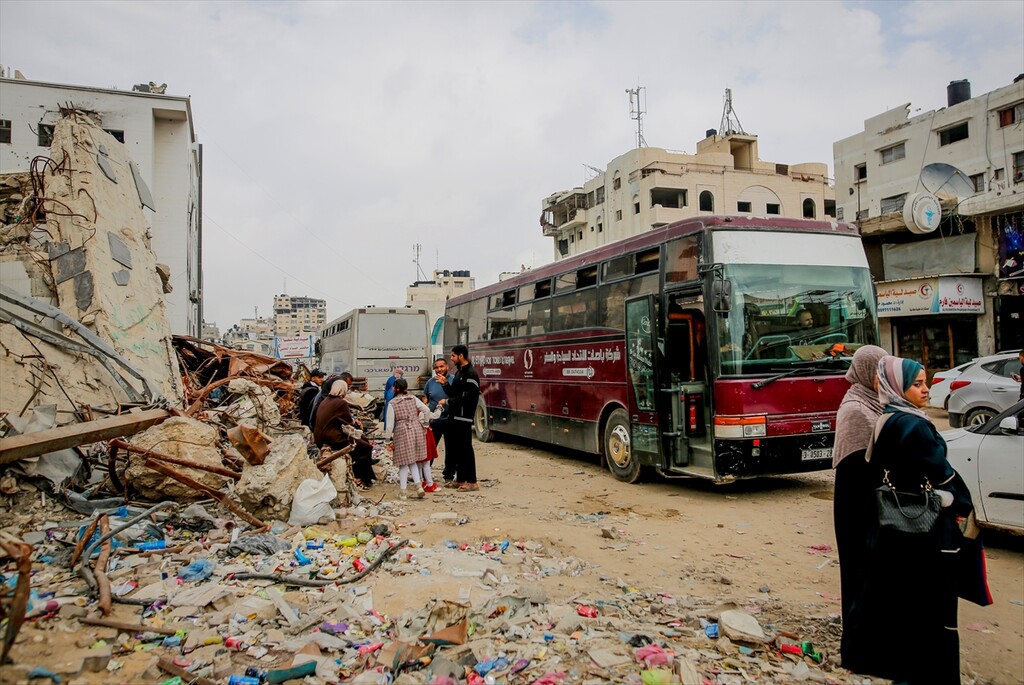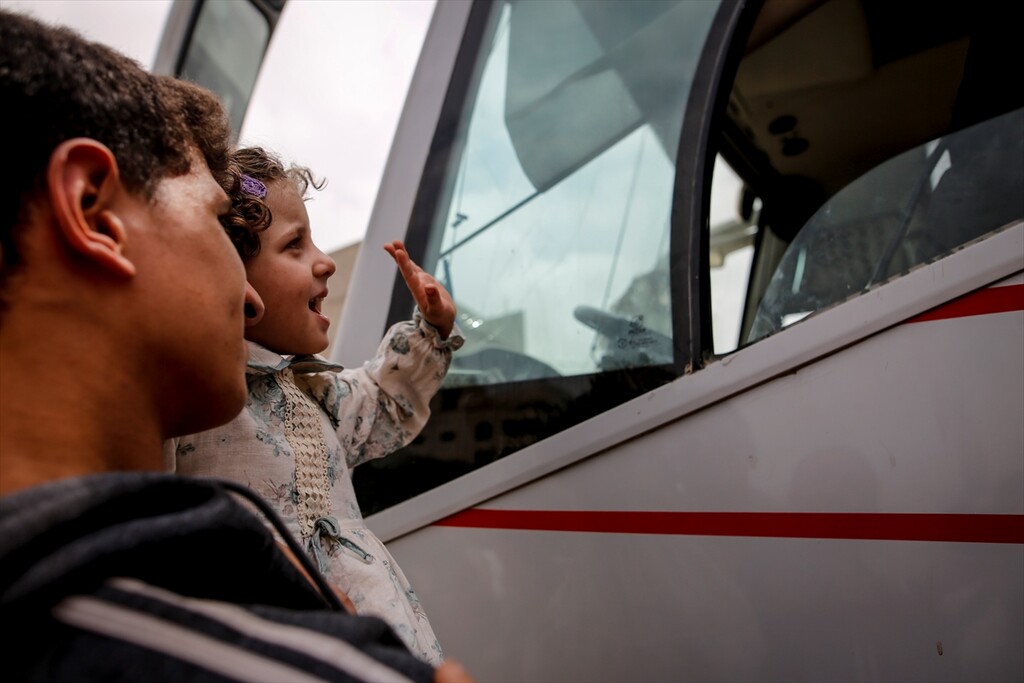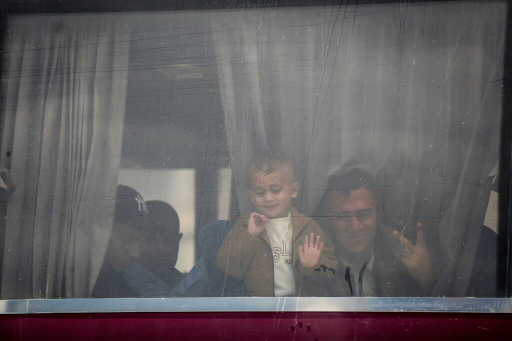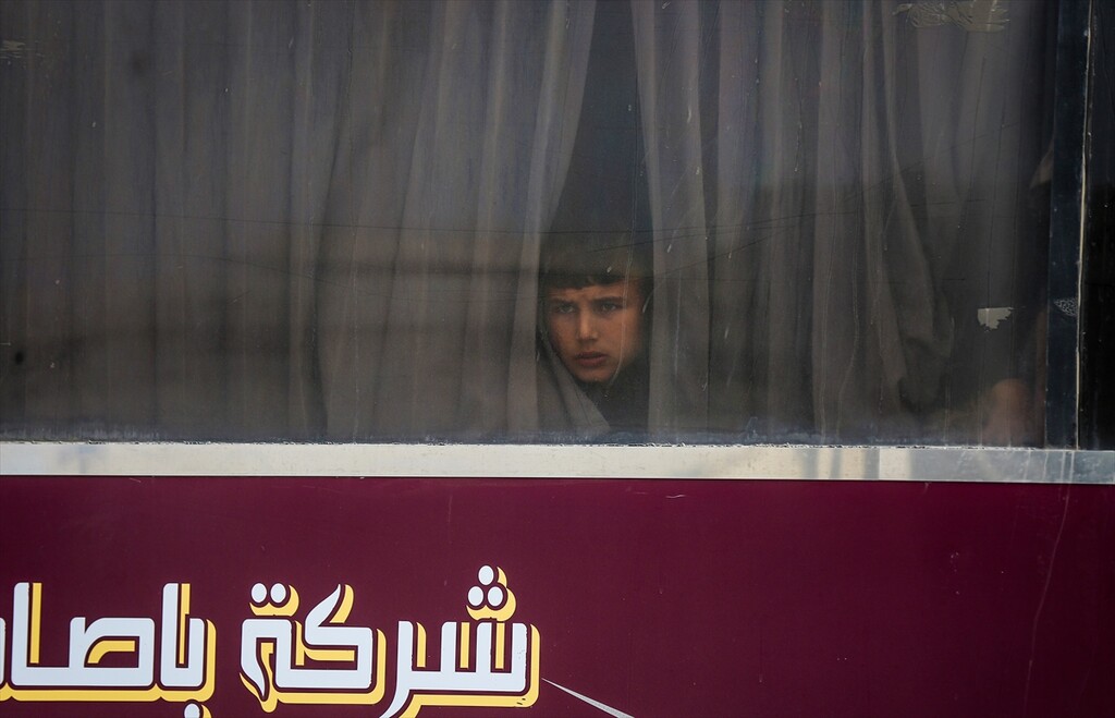A group of Palestinian patients and their companions board buses in front of Al-Shifa Hospital to be evacuated to Jordan for medical treatment in coordination with World Health Organization (WHO) in Gaza City, Gaza on April 26, 2026.