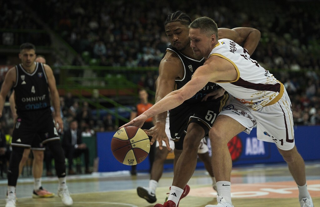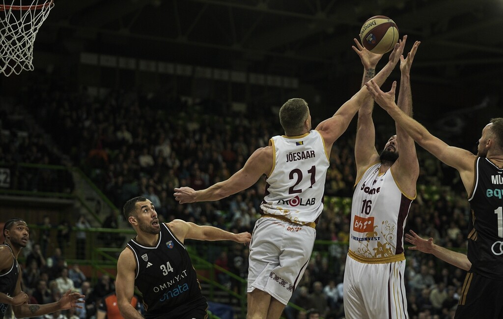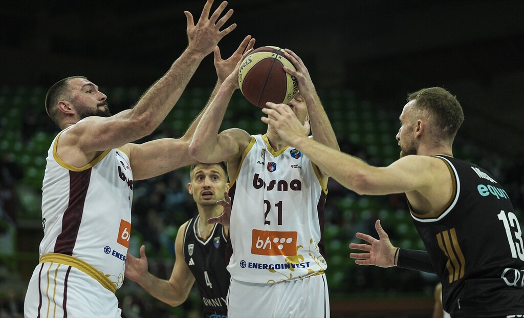 Players in action during the ABA League match between KK Bosna Vs Dubai Basketball at Zetra on April 21, 2026 in Sarajevo, Bosnia and Herzegovina.