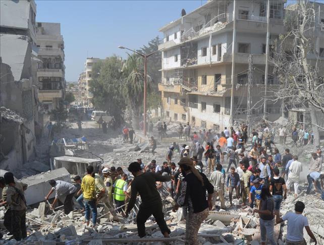 At least six civilians were killed, and dozens injured when the Syrian regime jets dropped vacuum bombs on a residential area in the town of Arbin in Eastern Ghouta, an opposition-held region east of the capital Damascus, a civil defense source told Anadolu Agency.