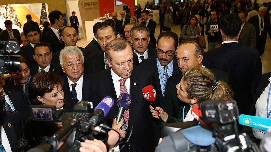 Recep Tayyip Erdogan made the pledge while talking to reporters at a climate change summit in Paris.