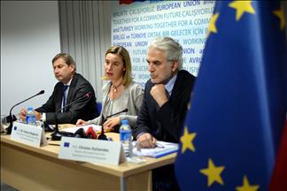 Both men, dressed in dark suits before assembled media, made what appeared to be lighthearted comments during a short photo op.