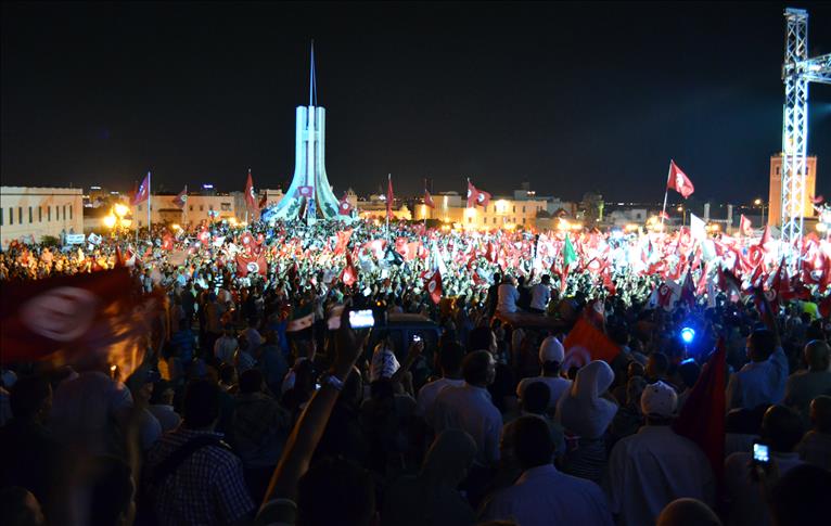 Tunisian pro-democracy and pro-revolution groups held a huge rally in Tunisian capital Tunis on Saturday evening under the name "The revolution is about to begin now. Our unity and revolution will succeed."