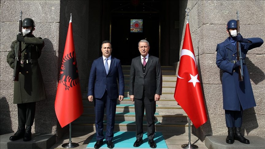 Turkey’s defense chief welcomed his Albanian counterpart with a military ceremony in the capital Ankara on Wednesday, according to the National Defense Ministry.