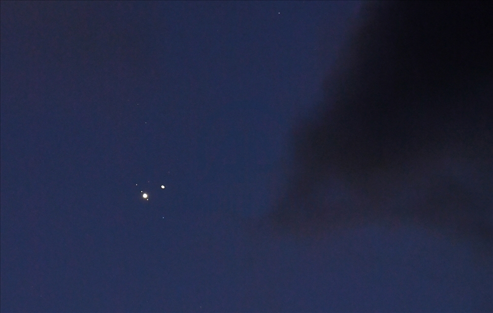 The seemingly snuggled-up planets appeared just a tenth of a degree apart, or about one-fifth the diameter of a full moon, it said, adding the phenomenon takes place every 20 years.
