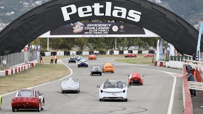 Students in northwestern Turkey on Sunday raced the electric vehicles they built to compete during the country's largest aerospace and technology event.