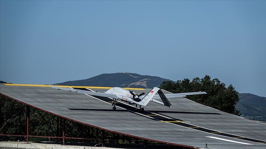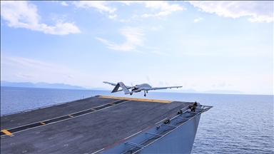 The Bayraktar TB3 unmanned aerial vehicle (UAV) from defense firm Baykar carried out its "ramp takeoff test" under conditions similar to those of the TCG Anadolu, an amphibious assault ship Türkiye commissioned in 2010.