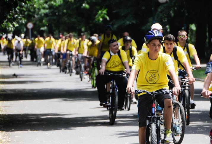 Almost 1,000 cyclists from 20 countries broke the Guinness World Record for the longest single line of bicycles in the Bosnian capital Sarajevo on Sunday.