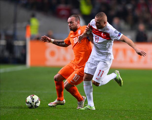 Turkey striker Burak Yilmaz scored the opening goal for his team in the 37th minute. Burak's shot went in after hitting Dutch defender Bruno Martins Indi in the area.