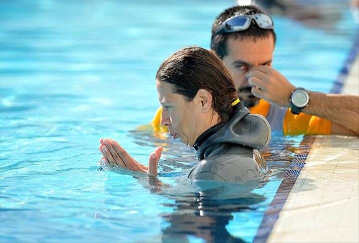 Staying under water for one minute and 55 seconds, Can broke the 61-metre record of METU Sports Club member Sahika Ercumen.