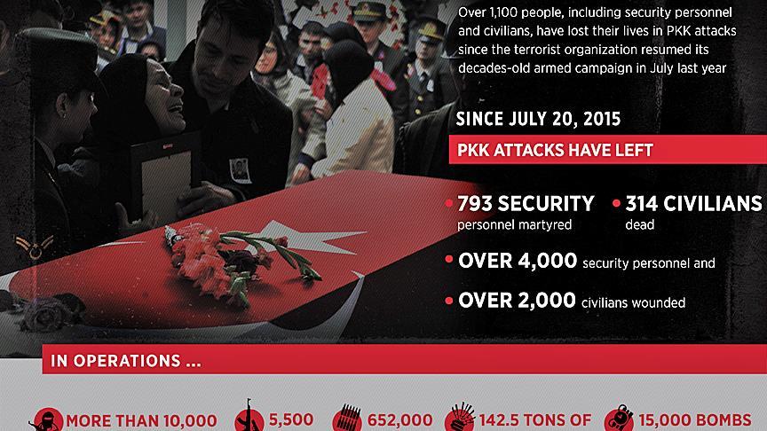 Over 1,100 people, including security personnel and civilians, have lost their lives in the PKK attacks since the terrorist organization resumed its decades-old armed campaign in July last year, a security source said Thursday.