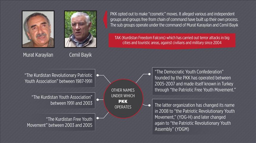 The terrorist organization staged attacks through its sub units: “The Kurdistan Revolutionary Patriotic Youth Association” between 1987-1991, “The Kurdistan Youth Association” between 1991 and 2003 and “The Kurdistan Free Youth Movement” between 2003 and 2005. The movement has operated under the name of “the Independent Youth Movement” in Turkey.