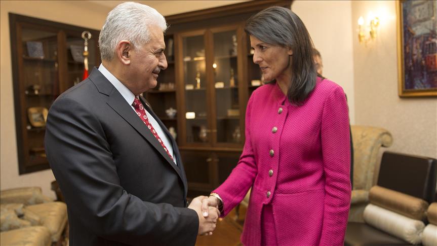 Prime Minister Binali Yildirim on Tuesday met here with U.S. Ambassador to the UN Nikki Haley here to discuss the Syrian refugee crisis.