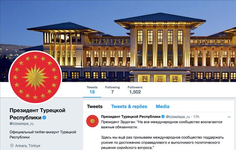 The Russian language account was also added to the presidential corporate Twitter accounts that broadcast in Turkish, English, Arabic and French to approximately 10 million followers, during the ceremony that was attended by President Recep Tayyip Erdogan and his Russian counterpart, Vladimir Putin.