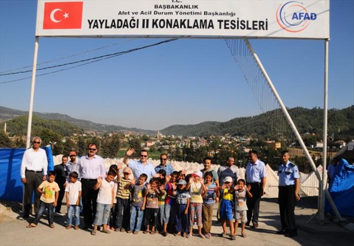 Yayladagi Subgovernor Tolga Polat said that there were two tent sites in the town, and one of them was hosting Syrian Turkmens, adding that there were also an education tent comprised of 10 classrooms, playgrounds and a mosque as well as courses for women in the site.
