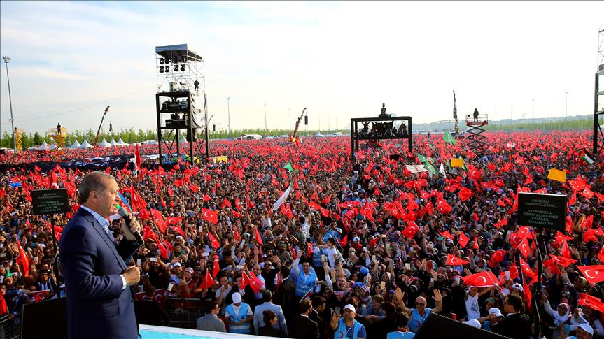 Anti-coup rallies across Turkey attended by millions of people since July 15 will culminate in a massive rally next weekend uniting Turks from all walks of life, President Recep Tayyip Erdogan announced Saturday.