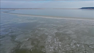 After its ice-blue hue during the winter, the lake changes color in summer to a mixture of red and white due to a type of algae called dunaliella salina, said Yusuf Sinan Dogan, a manager at Koyuncu Kaldirim Saltworks.