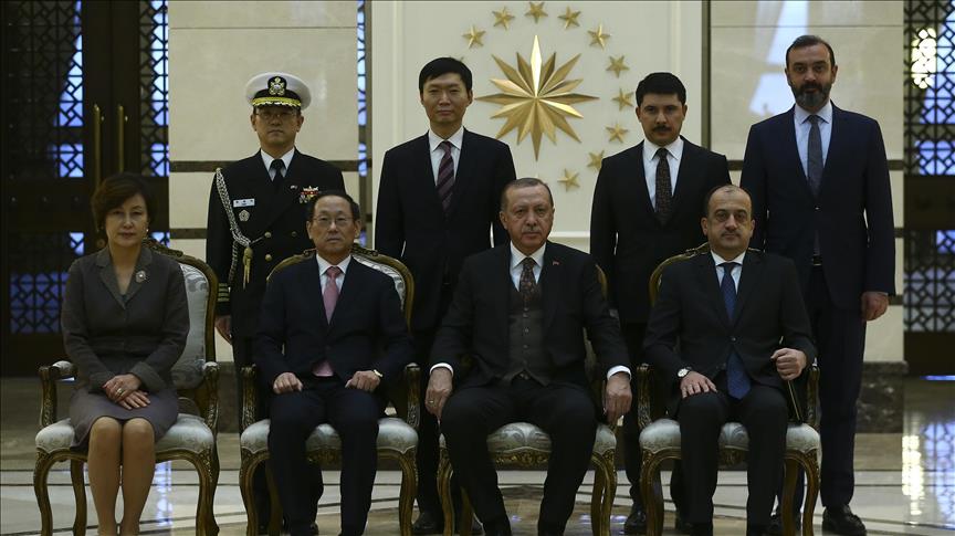 Turkish President Recep Tayyip Erdogan welcomed the newly appointed ambassadors of South Korea, the Republic of Congo and Lebanon at the presidential complex in Ankara Tuesday.