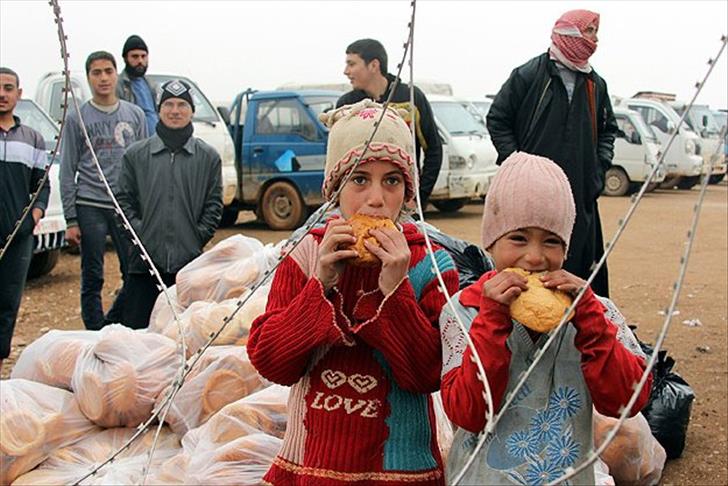 From Turkish village of Bukulmez, relief workers had sent 25 tonnes of flour, 2 thousand pairs of boots, 13 thousand bottles of water and food packet enough for 17 thousand people to Syrians who tries to survive near Atme village in Syria.