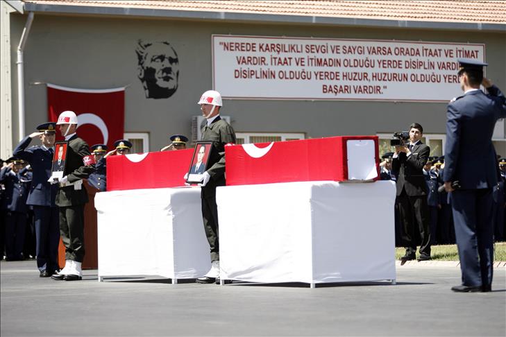 A funeral ceremony took place at the Seventh Main Jet Base in eastern province of Malatya on Friday for two Turkish pilots who were killed when their jet was downed by Syria on June 22.