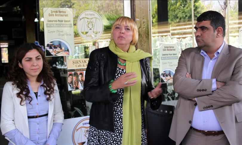 In Cizre, Roth was welcomed by the member of the assembly of the municipality Hanim Onur and Sirnak Bar Association's lawyer Sertac Ozkan.