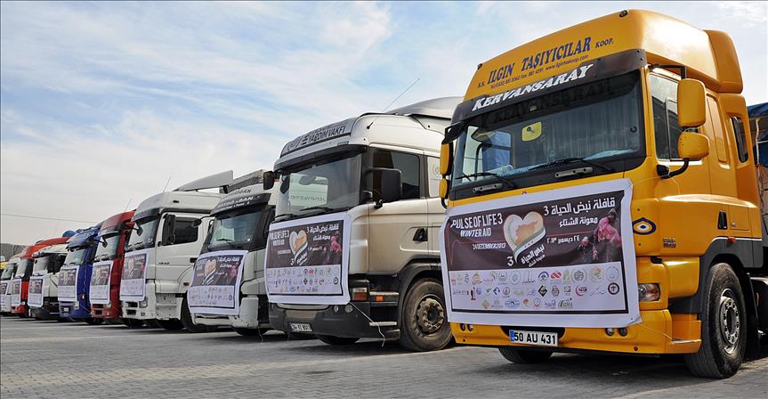 Turkey's IHH (Humanitarian Relief Foundation) sends 10-15 trucks a day through three border crossings along the Turkey-Syria border to help struggling Syrians.