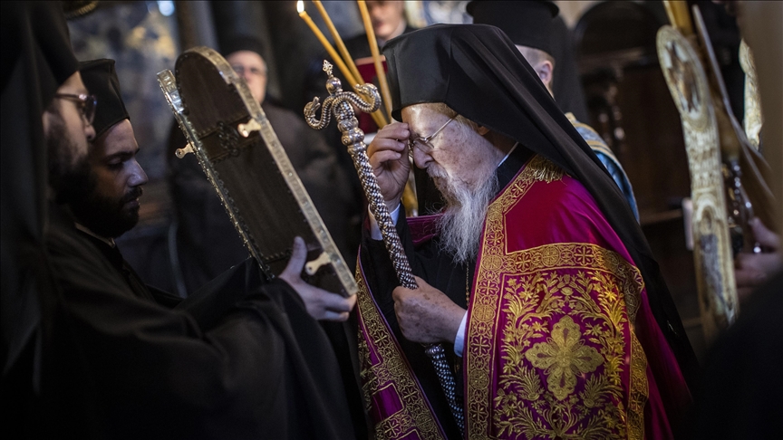 Patriarch Bartholomew himself led the morning ceremony held at St. George's Cathedral, also known as Aya Yorgi Church, as participants chanted prayers and lit candles for the ritual.
