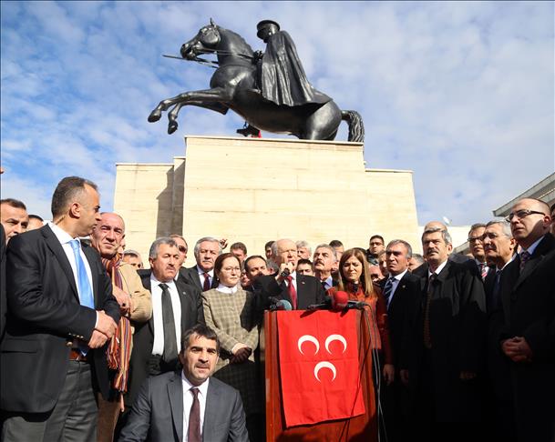 Bahceli's arrival came three days after Prime Minister Ahmet Davutoglu challenged him to pay a "gallant" visit to the province during his Justice and Development (AK) Party's group meeting on Tuesday, asking Bahceli to repeat his remarks in front of the people there.
