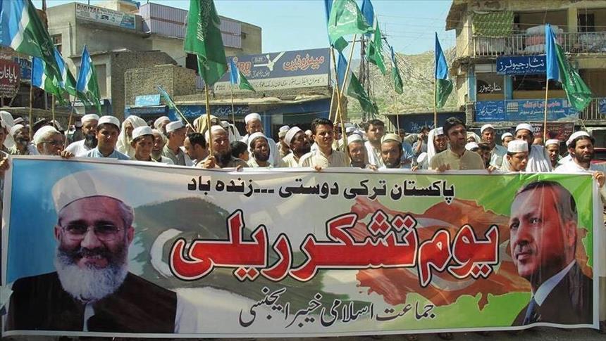 Carrying green-and-white Pakistan flags and Turkey’s red-and-white flags, participants marched on the roads and held demonstrations commending the vigor and resolve of the Turkish people in protecting their democracy.